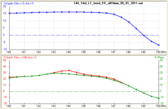 This Yagi has an exceptionally low side- and back lobe volume for its length. It may serve as single antenna for Tropo, Meteor Scatter or even EME