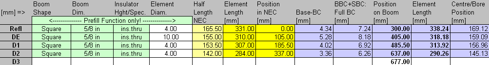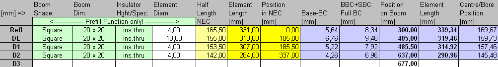 Note that with an elements insulated through boom built for best results boomlength and positions to first /last element must be kept as given.