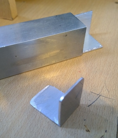 On Left: raw material, a 30 x 30 mm square tube / on the right: the ready made and mounted bracket and bushing
